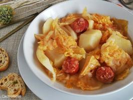 Repollo con patatas y chorizo - guiso fácil, rápido y muy sabroso